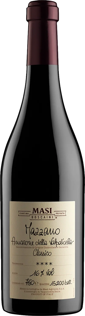Mazzano is a single vineyard wine bottled under Masi’s Cantina Boscaini Privata label, reserved only for the very best wines from the best vintages. The historic vineyard that births Mazzano has been renowned for its quality since the twelfth century. It’s a picturesque place in the commune of Negrar, a steep site that varies between 350 and 415m above sea level. Its loose-soiled terraces are supported by dry stone walls (marogne) and follow the contours of the hill with exposures from north-east to south-west.